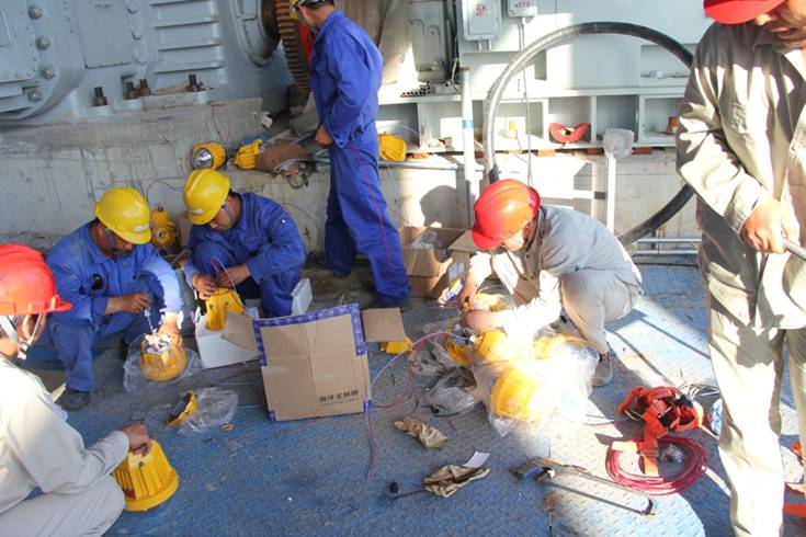經(jīng)過了三個半小時的奮戰(zhàn),終于在19:15分準時送電。黑暗的管廊、鐵塔、平臺瞬間亮起,無數(shù)燈盞仿佛群星閃爍,伙伴們開心地笑了。而這時的老楊還沒有吃晚飯。
