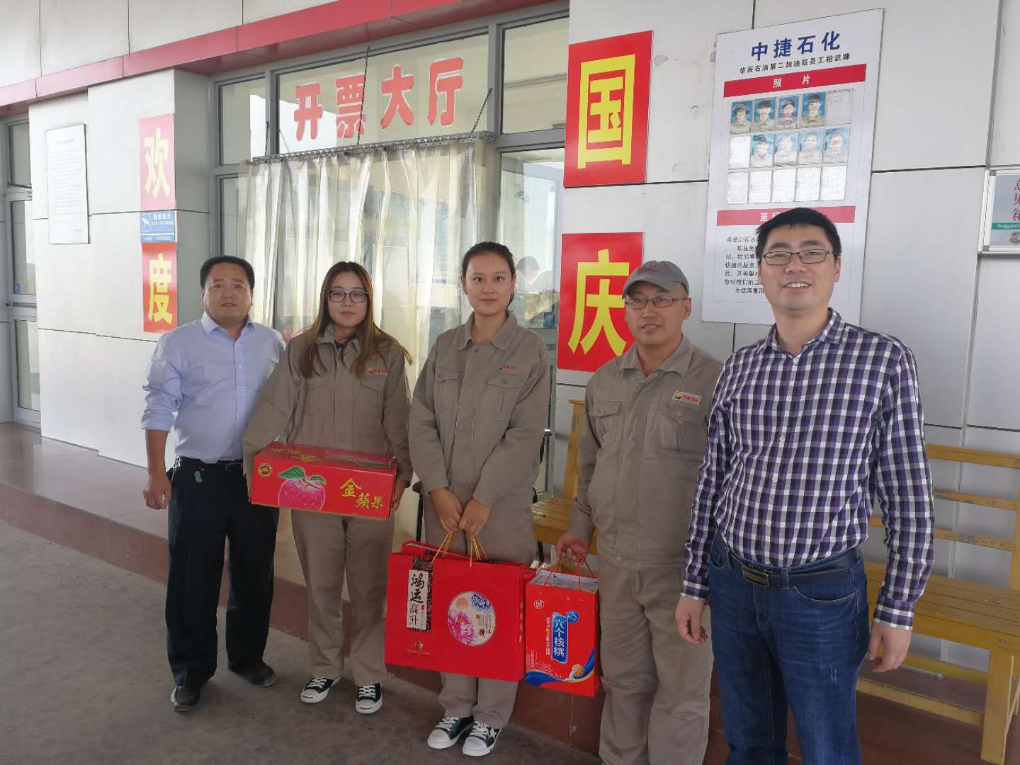 金秋時(shí)節(jié),丹桂飄香,又是一年中秋月圓時(shí)。10月4日,河北中捷石化集團(tuán)董事長王振華、總經(jīng)理于國臣攜集團(tuán)領(lǐng)導(dǎo)班子來到華辰石油公司第一加油站,親切慰問了節(jié)日期間仍然堅(jiān)守在一線的加油員工,并向他們送去了節(jié)日的祝福和慰問品。