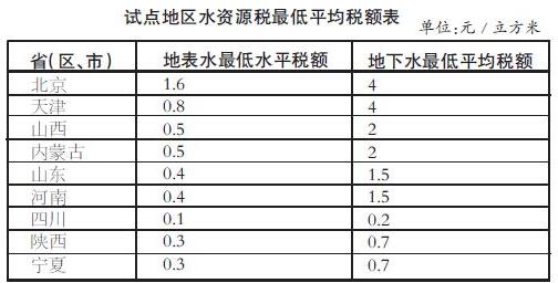 此次試點(diǎn)最低平均稅額為:地表水每立方米0.1-1.6元、地下水每立方米0.2-4元。按不同取用水性質(zhì)實行差別稅額:對地下水超采地區(qū)取用地下水加征1-4倍;對超計劃或超定額用水加征1-3倍;對特種行業(yè)從高征稅;對超過規(guī)定限額的農(nóng)業(yè)生產(chǎn)取用水、農(nóng)村生活集中式飲水工程取用水等從低征稅。試點(diǎn)方案還明確了規(guī)定限額內(nèi)的農(nóng)業(yè)生產(chǎn)取用水、取用污水處理再生水、采油排水分離凈化后回注等6種減免稅情形。
