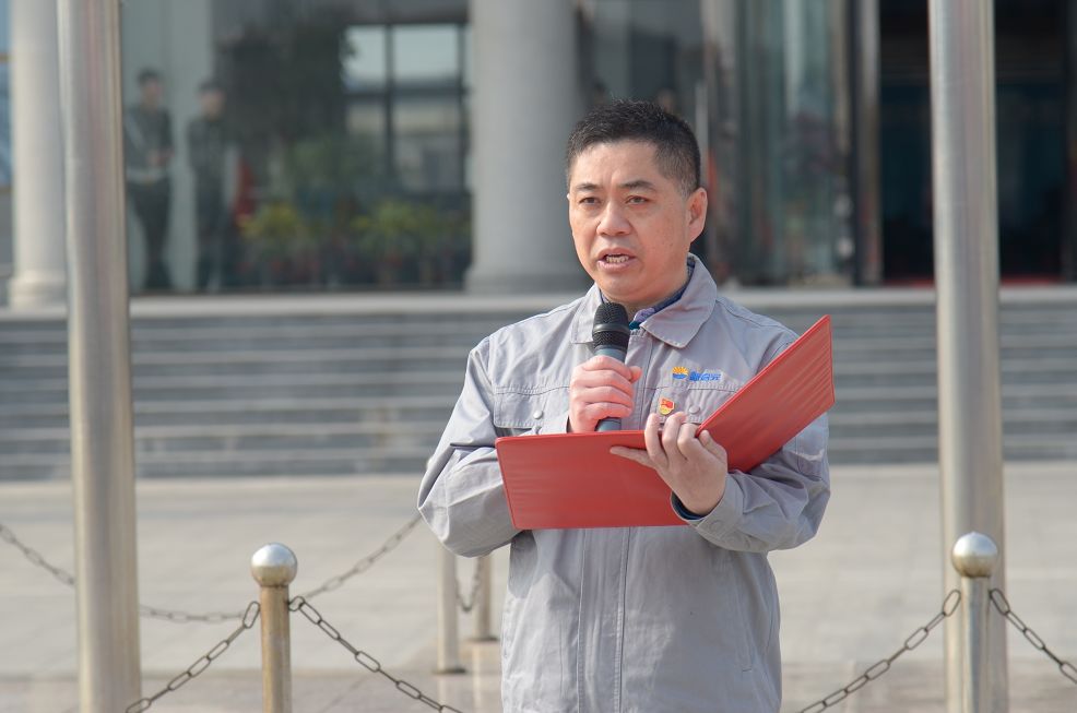 升旗儀式結(jié)束后,新啟元公司總經(jīng)理喬樹(shù)華受集團(tuán)委托在國(guó)旗下講話,他指出:中捷石化集團(tuán)全體伙伴要高舉習(xí)近平新時(shí)代中國(guó)特色社會(huì)主義思想偉大旗幟,緊抓機(jī)遇,改革創(chuàng)新,以赤誠(chéng)之心,為實(shí)現(xiàn)兩個(gè)一百年偉大目標(biāo)而砥礪奮進(jìn)。同時(shí),五星紅旗在天安門(mén)國(guó)旗班前輩的指引下,高高飄揚(yáng)在祖國(guó)懷抱里的中捷石化土地上,我們千余名伙伴要時(shí)刻銘記集團(tuán)董事長(zhǎng)的教導(dǎo),堅(jiān)定信仰,傳承石化精神,以實(shí)現(xiàn)中捷石化夢(mèng)為己任,勇往直前,譜寫(xiě)中捷石化新時(shí)代新篇章,為實(shí)現(xiàn)偉大中國(guó)夢(mèng)而努力奮斗!