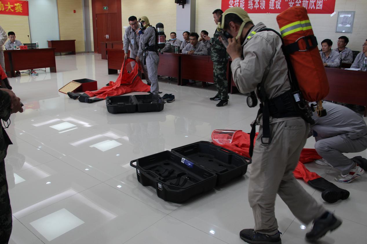 本次比賽分為“正壓式空氣呼吸器佩戴、防化服穿戴、安全知識問答”三個項目。在主持人發(fā)出“開始”口令后,選手們個個奮勇爭先,都拿出了自己的看家本領,展現(xiàn)精湛的“武技”,將活動氛圍推向高潮。經(jīng)過緊張激烈的角逐,最終運行二部張賽以18秒03的成績獲得正壓式空氣呼吸器佩戴項目的冠軍,運行一部王圣濤、馬帥以35秒71的優(yōu)異成績奪得防化服穿戴項目的冠軍。