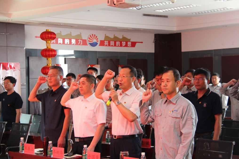 集團(tuán)黨委書記于國臣同志帶領(lǐng)全體參會(huì)人員共同重溫入黨誓詞,鏗鏘有力的宣誓聲縈繞在會(huì)場(chǎng)的每一個(gè)角落,讓中捷石化的全體黨員更加堅(jiān)定了“不忘初心、牢記使命”的共產(chǎn)黨人本色。