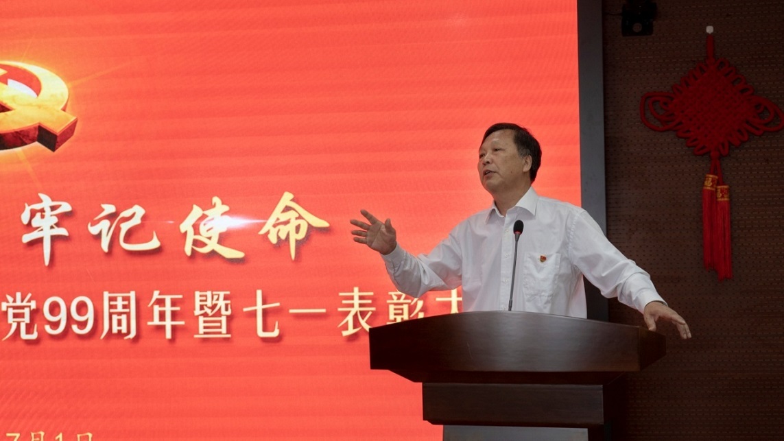 集團(tuán)黨委書記于國臣同志為大會(huì)作題為《規(guī)規(guī)矩矩做黨建  實(shí)實(shí)在在促發(fā)展》的重要講話。于書記首先指出,集團(tuán)黨委組織召開的此次隆重聚會(huì),是為了共同慶祝中國共產(chǎn)黨成立99周年,同時(shí)也對(duì)過去一年中涌現(xiàn)出的先進(jìn)基層黨組織、優(yōu)秀黨員和優(yōu)秀黨務(wù)工作者進(jìn)行表彰,這對(duì)于我們牢記黨的光輝歷史,發(fā)揚(yáng)黨的優(yōu)良傳統(tǒng),進(jìn)一步提升集團(tuán)黨委基層黨組織的戰(zhàn)斗力、凝聚力和創(chuàng)造力,對(duì)于我們‘黨建促共建、共建促發(fā)展’目標(biāo)的達(dá)成,以及對(duì)于在中捷石化建廠45周年的特殊節(jié)點(diǎn),繼續(xù)全面推進(jìn)集團(tuán)的持續(xù)、穩(wěn)定、創(chuàng)新、發(fā)展都具有十分重要的意義。我代表集團(tuán)黨委及集團(tuán)公司,向獲得表彰的組織和個(gè)人表示熱烈的祝賀!向集團(tuán)全體黨員致以親切的節(jié)日問候!