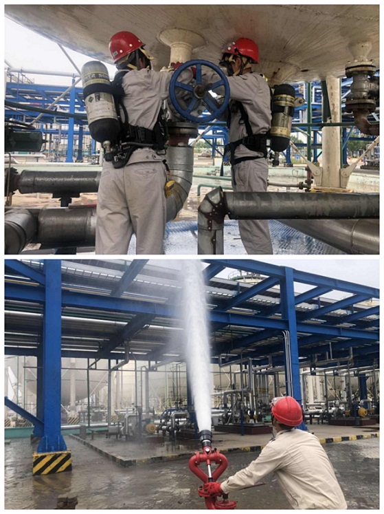 此次安全月演練以突擊形式展開,以重大危險(xiǎn)源專項(xiàng)演練,模擬收發(fā)油品裝卸車冒油、著火,液化氣鶴管斷裂等事故處理,演練要求罐區(qū)、收發(fā)及后勤人員整體聯(lián)動(dòng),全面檢驗(yàn)部門應(yīng)急救援能力,強(qiáng)化全員應(yīng)急水平,從而增強(qiáng)專業(yè)安全技能,筑牢安全根基。