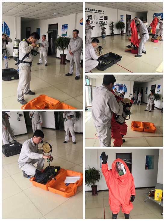 安全比武活動(dòng)內(nèi)容分別為空氣呼吸器穿戴及防護(hù)服穿戴,此活動(dòng)重點(diǎn)檢驗(yàn)員工對(duì)應(yīng)急器材的掌握情況,以及在突發(fā)應(yīng)急情況下快速準(zhǔn)確穿戴防護(hù)用品的能力。比賽期間,參賽選手緊抓比賽要點(diǎn),梳理檢查、佩戴、調(diào)整、確認(rèn)四個(gè)操作環(huán)節(jié),不時(shí)對(duì)佩戴技巧和要點(diǎn)難點(diǎn)進(jìn)行交流,共同探討如何提升安全技能水平。