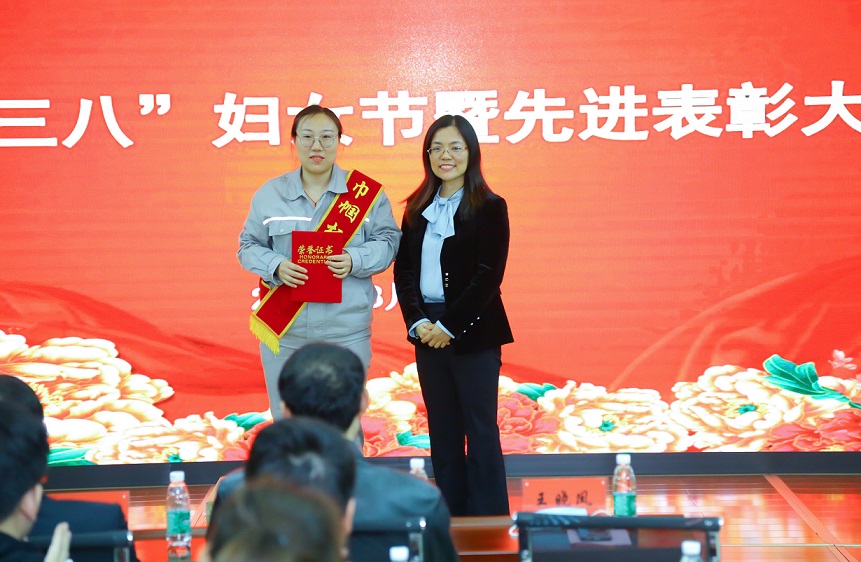中捷產(chǎn)業(yè)園區(qū)總工會王曉鳳主席為巾幗標(biāo)兵頒獎