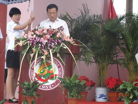 2012年9月2日上午10點,秋雨淅瀝,彩帶飄飄。黃驊中學在眾人翹盼中,迎來了她60歲的生日慶典,來自社會各界的校友齊聚一堂。慶典會上,集團公司總經(jīng)理于國臣代表集團公司董事長王振華,以及捐資助教的企業(yè)界同仁發(fā)言。發(fā)言中,于總既表達了中捷石化對黃驊中學的深切關注和支持,又表達了對黃驊中學60年華誕的祝福,以及對歷屆教師春風化雨的敬意。
