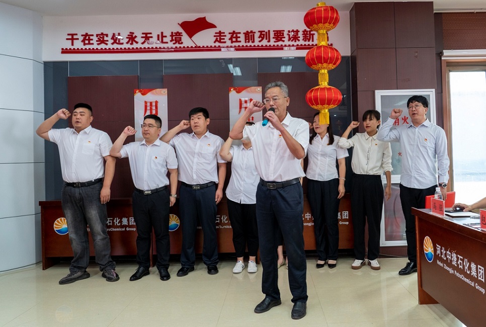 集團(tuán)黨委副書記、紀(jì)委書記朱振江同志帶領(lǐng)2021年新發(fā)展黨員進(jìn)行入黨宣誓。