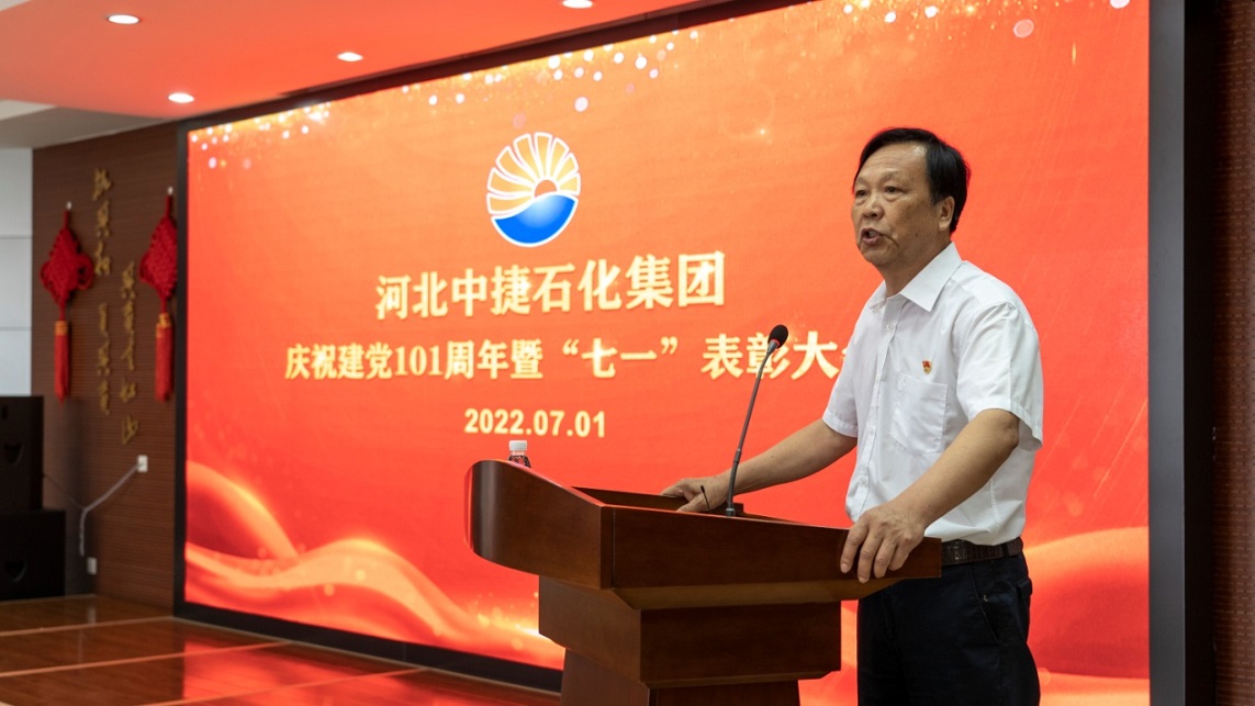 集團(tuán)公司訊 為隆重紀(jì)念中國(guó)共產(chǎn)黨成立101周年,繼續(xù)深入開展黨史學(xué)習(xí)教育,進(jìn)一步激發(fā)基層黨組織戰(zhàn)斗堡壘作用和黨員先鋒模范作用,同時(shí)為選優(yōu)樹先、弘揚(yáng)正氣,不斷增強(qiáng)基層黨組織和廣大黨員干部職工的凝聚力、號(hào)召力和戰(zhàn)斗力,7月1日,河北中捷石化集團(tuán)黨委組織召開慶祝建黨101周年暨“七一”表彰大會(huì)。原中捷企業(yè)黨工委書記沈?qū)W明同志,集團(tuán)黨委書記于國(guó)臣同志,集團(tuán)黨委副書記、總經(jīng)理喬樹華同志,集團(tuán)黨委副書記、紀(jì)委書記朱振江同志以及各所屬黨(總)支部書記,各支部黨員代表參加了此次活動(dòng)。