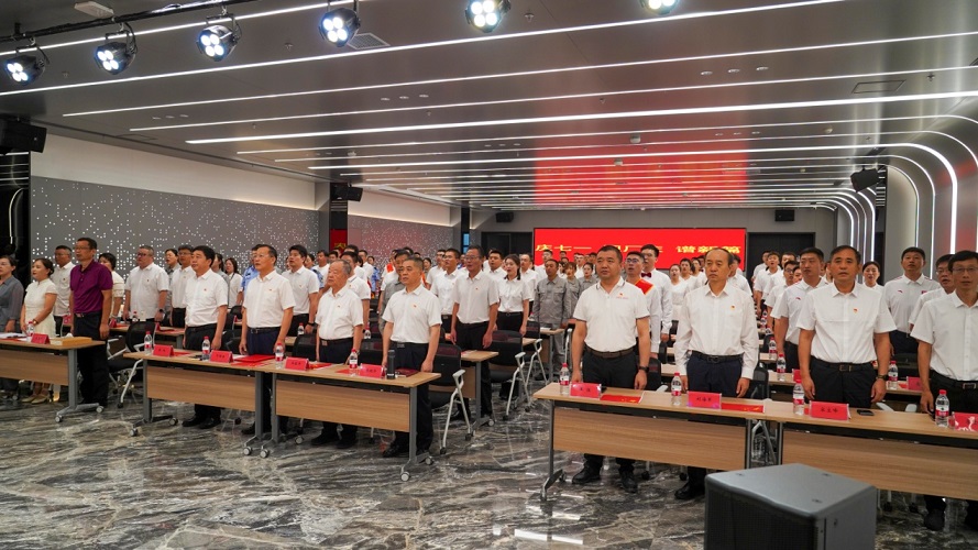 集團黨委書記于國臣同志帶領(lǐng)全體參會人員重溫入黨誓詞。