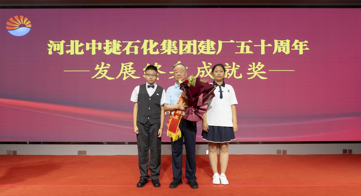 隨后,全體與會(huì)人員共同觀看宣傳片《王者之光振業(yè)華彩》,領(lǐng)略中捷石化集團(tuán)董事長(zhǎng)王振華先生作為開拓者與掌舵者的戰(zhàn)略遠(yuǎn)見與輝煌成就。為致敬其數(shù)十年傾注心血智慧、引領(lǐng)集團(tuán)劈波斬浪的杰出貢獻(xiàn),大會(huì)特授予王振華先生“中捷石化發(fā)展終身成就獎(jiǎng)”,兩名石化子弟代表登臺(tái)獻(xiàn)上崇高敬意,生動(dòng)詮釋了中捷石化精神血脈的代代相承。