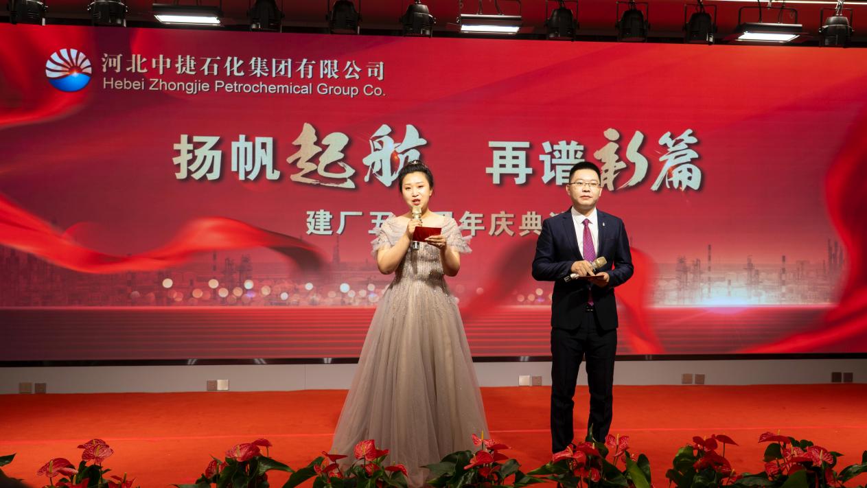 集團(tuán)公司訊 五秩風(fēng)華正茂,揚(yáng)帆再啟新程。7月16日上午,河北中捷石化集團(tuán)建廠五十周年慶典暨2025年上半年工作會(huì)議在中捷石化偉業(yè)大廈二樓多功能廳盛大舉行,集團(tuán)董事長(zhǎng)王振華、黨委書記于國(guó)臣、總經(jīng)理喬樹華,以及集團(tuán)主要領(lǐng)導(dǎo)、各所屬單位管理人員及員工代表、特邀代表,共計(jì)180余人參加會(huì)議。會(huì)議由集團(tuán)副總經(jīng)理張鵬主持。慶典在激昂的《中捷石化之歌》中拉開序幕。