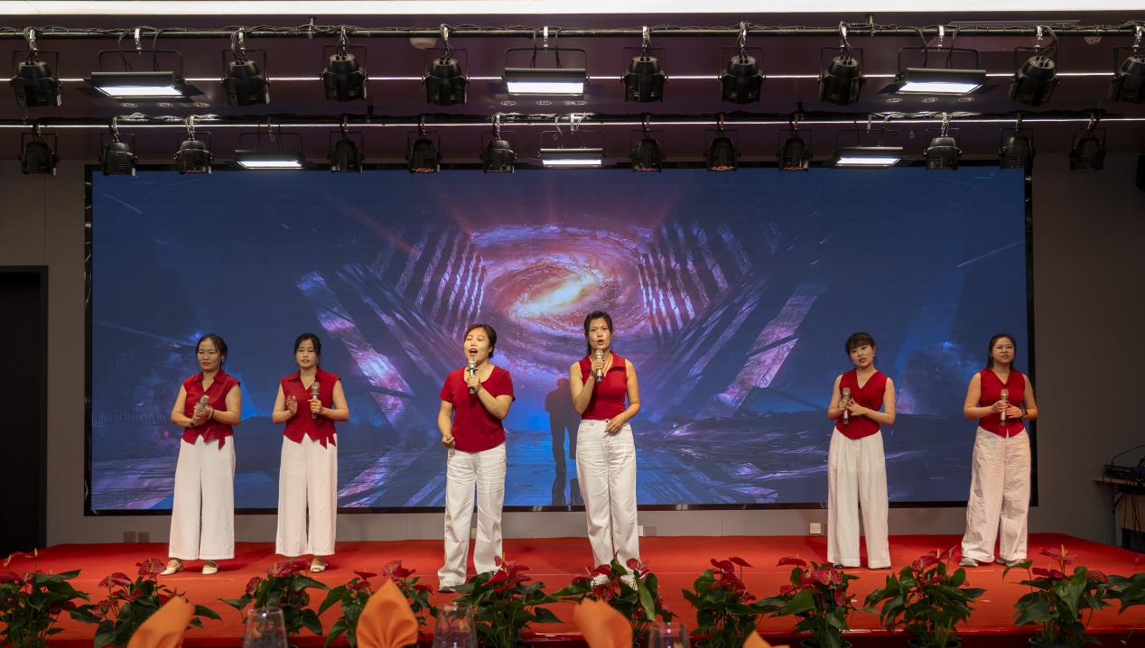 各單位選送的節(jié)目飽含深情與力量,為慶典增添了濃厚的喜慶氛圍。演出在《振聲華章——致敬中捷石化建廠50周年》的深情舞蹈中拉開帷幕,舞者用優(yōu)美的肢體語言詮釋了對(duì)企業(yè)的無限熱愛與崇高禮贊;詩朗誦《同一首歌》與架子鼓伴唱的《海闊天空》交相輝映,前者以激昂文字回溯創(chuàng)業(yè)艱辛,后者以澎湃旋律展望廣闊未來;《璀璨冒險(xiǎn)人》《刀劍如夢(mèng)》等節(jié)目,生動(dòng)展現(xiàn)了中捷石化人勇于追夢(mèng)、開拓進(jìn)取的豪邁氣概;新啟元公司管理團(tuán)隊(duì)合唱的《團(tuán)結(jié)就是力量》鏗鏘有力,新欣園公司管理團(tuán)隊(duì)演繹的《明天會(huì)更好》充滿希望,唱出了“志存高遠(yuǎn)向深藍(lán)事不避難是勁帆”的勇者心聲,將現(xiàn)場(chǎng)氣氛推向高潮。