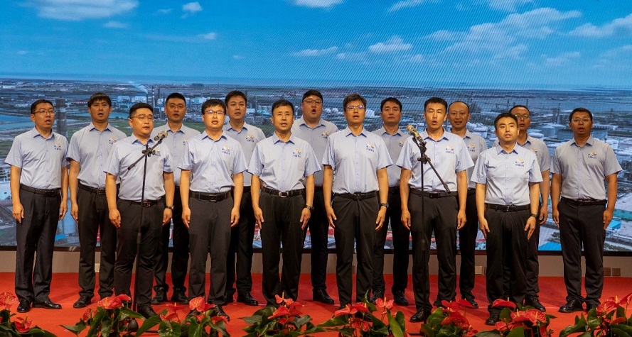 隨后,在溫馨而莊重的氛圍中,集團(tuán)董事長(zhǎng)王振華,黨委書記于國(guó)臣,總經(jīng)理喬樹華等集團(tuán)公司領(lǐng)導(dǎo),各所屬單位董事長(zhǎng)、總經(jīng)理共同上臺(tái),全場(chǎng)齊唱生日歌,為中捷石化50歲生日獻(xiàn)上最美好的祝福。