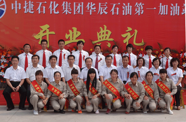 開業(yè)慶典結束后,參加典禮的各位領導和嘉賓,以及第一加油站的員工進行了合影留念。