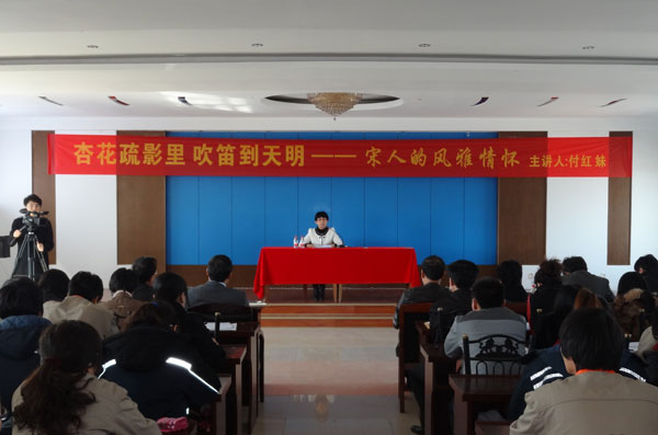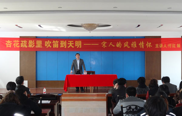 3月22日,河北中捷石化集團和黃驊報社聯(lián)合舉辦以“杏花疏影里 吹笛到天明——宋人的風雅情懷”為主題的講座。此次講座,公司邀請了滄州師范學院中文系教授、北京大學文學碩士付紅妹為主講,同時應邀到場的還有渤海新區(qū)宣傳工作領(lǐng)導小組常務(wù)副組長、宣傳顧問劉桂茂,中捷產(chǎn)業(yè)園區(qū)組宣部部長田永斌,黃驊報社社長楊勇,黃驊報社副主編李東明,中捷石化集團總經(jīng)理于國臣等公司領(lǐng)導,以及集團公司文化宣傳員和文學愛好者。