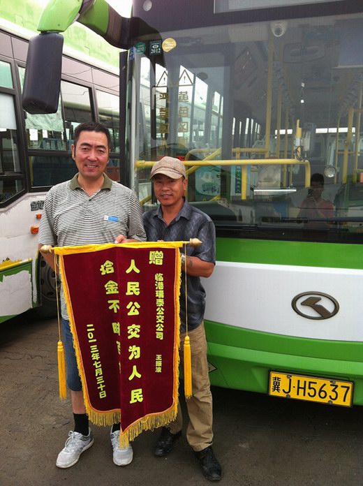 李先生當(dāng)時(shí)就很激動(dòng),立即拿出錢來(lái)感謝駕駛員王振波,王師傅說(shuō)啥也不收,他說(shuō)這是公交駕駛員起碼的職業(yè)道德。在8月5日早上,李先生又特地來(lái)到公司,將一面印有“人民公交為人民,拾金不昧百姓夸”的錦旗送到駕駛員王振波師傅的手里。