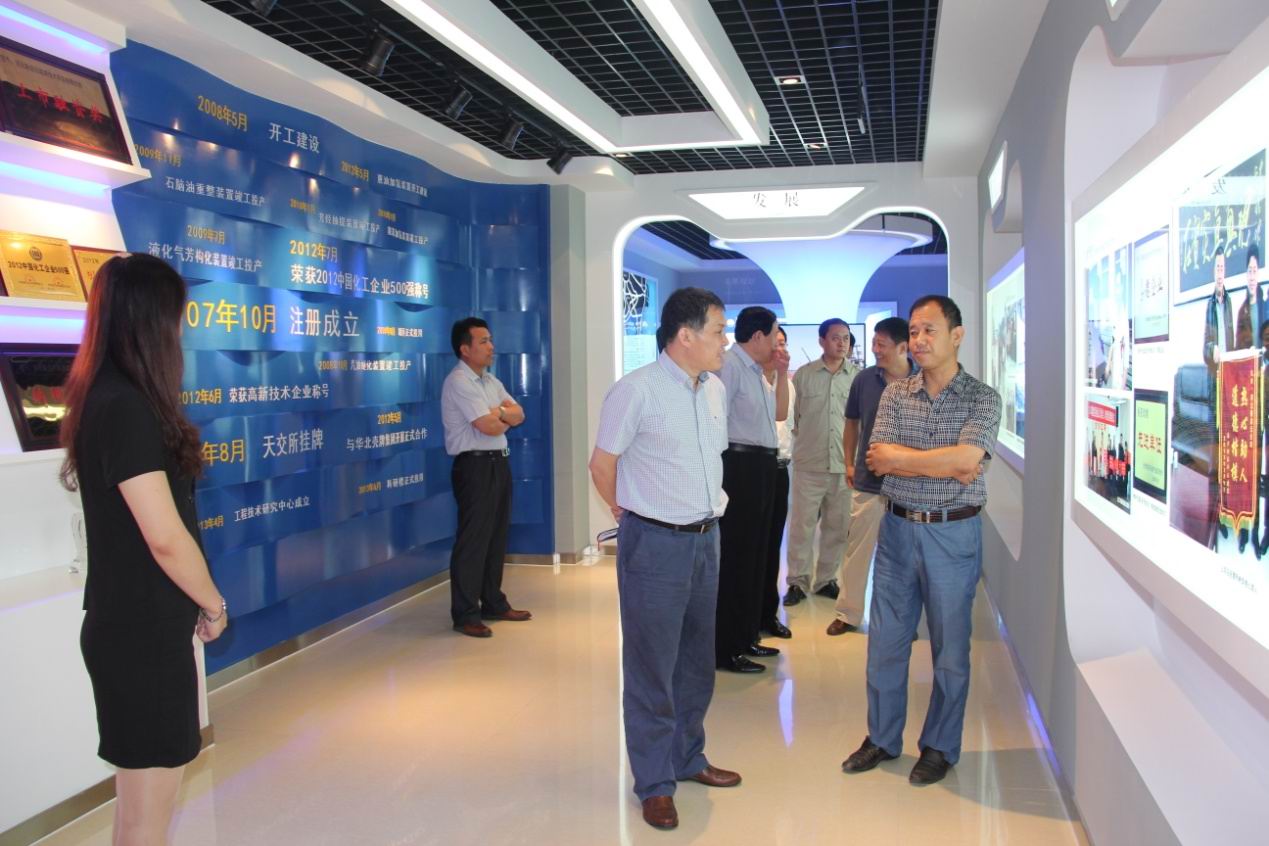 在公司展廳,解說員向在場領(lǐng)導(dǎo)著重介紹了公司現(xiàn)狀、公司理念、公司文化等內(nèi)容。董廳長指出:新啟元公司能夠抓住機(jī)遇、勇于爭先、做到服務(wù)發(fā)展、服務(wù)社會、服務(wù)群眾這種精神值得大家學(xué)習(xí)。期間,雙方領(lǐng)導(dǎo)就公司現(xiàn)有裝置工藝流程、堅(jiān)持發(fā)展循環(huán)經(jīng)濟(jì)理念等內(nèi)容還進(jìn)行了深入交流。